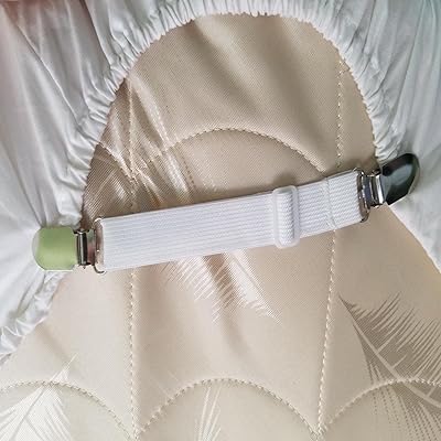 Adjustable Bed Sheet Clips Sheet Fasteners Holder Straps And Suspender Gripper Extend From 21 To 80 Long Style Elastic Fasteners Bands Heavy Duty Suit For Mattress Sofa Couch Recliner And More from images-na.ssl-images-amazon.com All in one bed sheet straps grippers fasteners clips holder, for mattress covers. They work with any type of bed, including adjustable beds, sofa beds and air mattresses. Just clip to each corner and make the bed us usual. 6 sides/12 points sheet clips: Sink in to fresh bedding designed for stylish and satisfying sleep. 4.5 out of 5 stars. Mattress clips prevent your bedding from slipping out of place. Adjustable sheet straps clip enable easier and quicker adjustment on strap length;